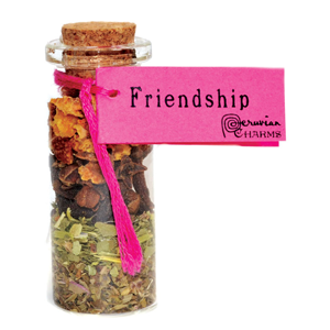 Carry our magic bottle with you at all times to help and lead you on your life's path. This sealed glass magic vial has a specially chosen blend of herbs to aid in friendship. Approximate dimensions: 2" tall x 1/2" dia.