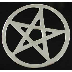 This altar tile shows an interlaced pentagram as a strong emblem of the elements unified and dominated by divinity or spirit, crafted of white metal to be a silvery presence of light and mysticism upon your alter.