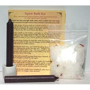 Our Spirit small bath set is designed to be used in conjunction with your ritual bath to heighten awareness and open your spirit to the experience of the energies around you, assisting you with further magical creation. Colors of candle holders and candles may vary.